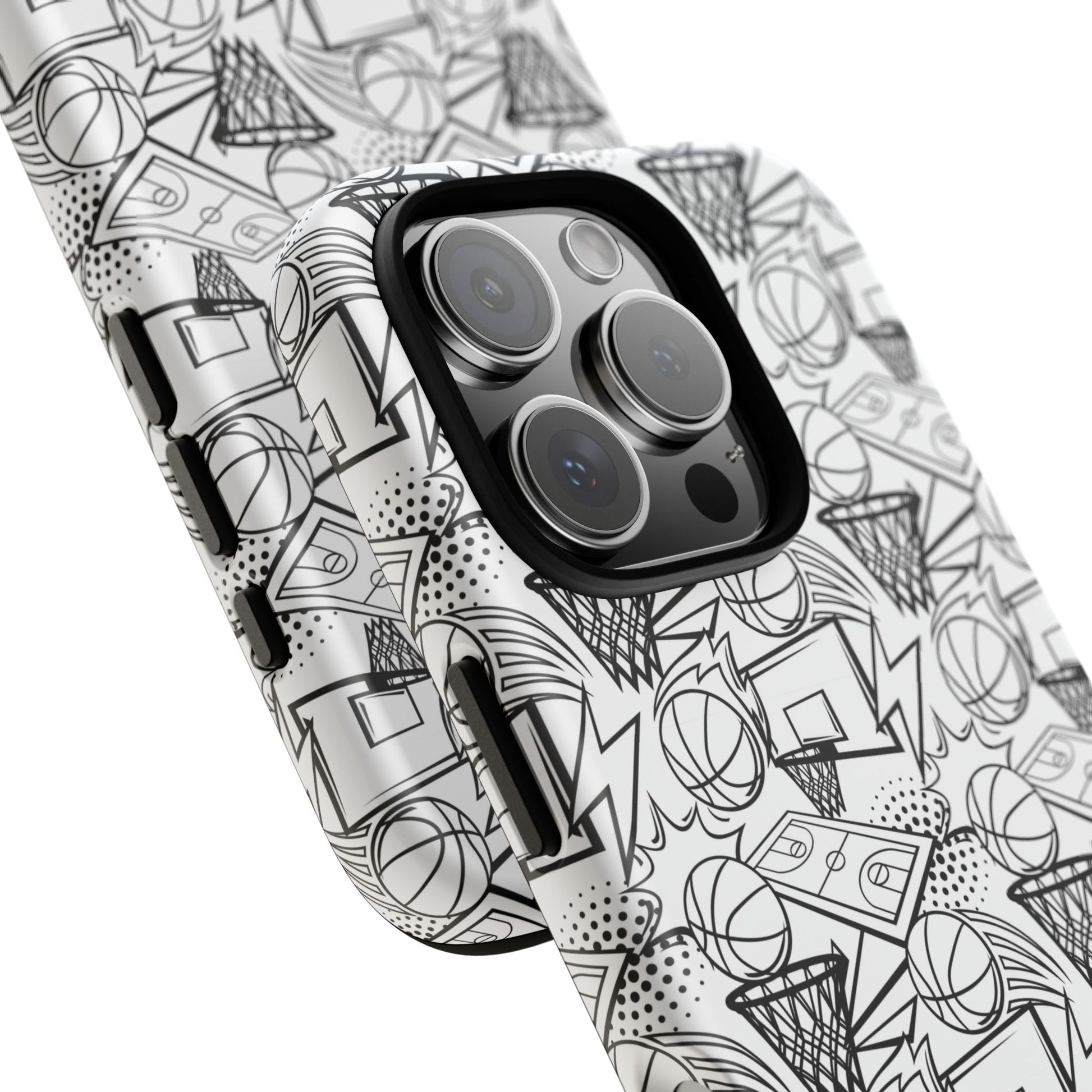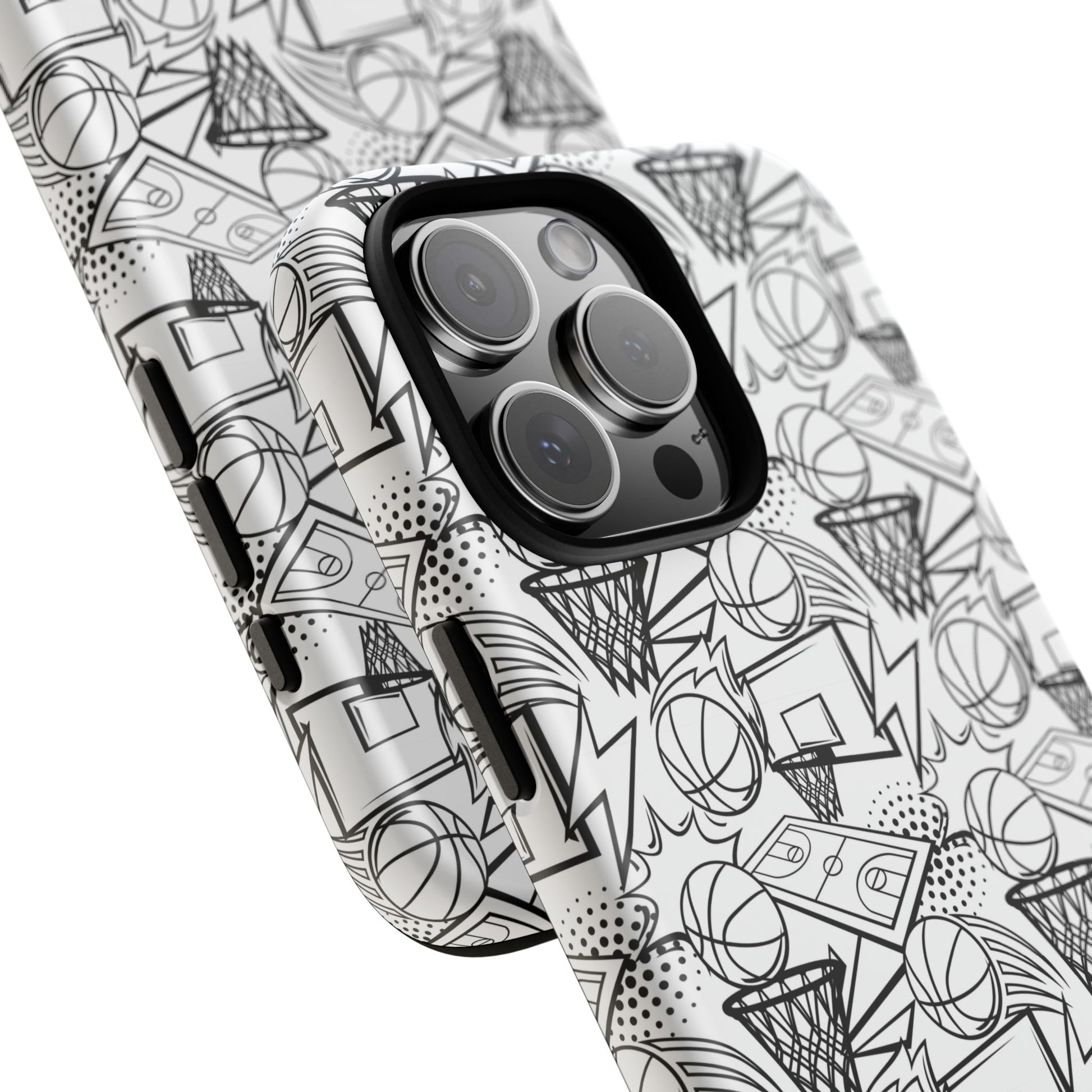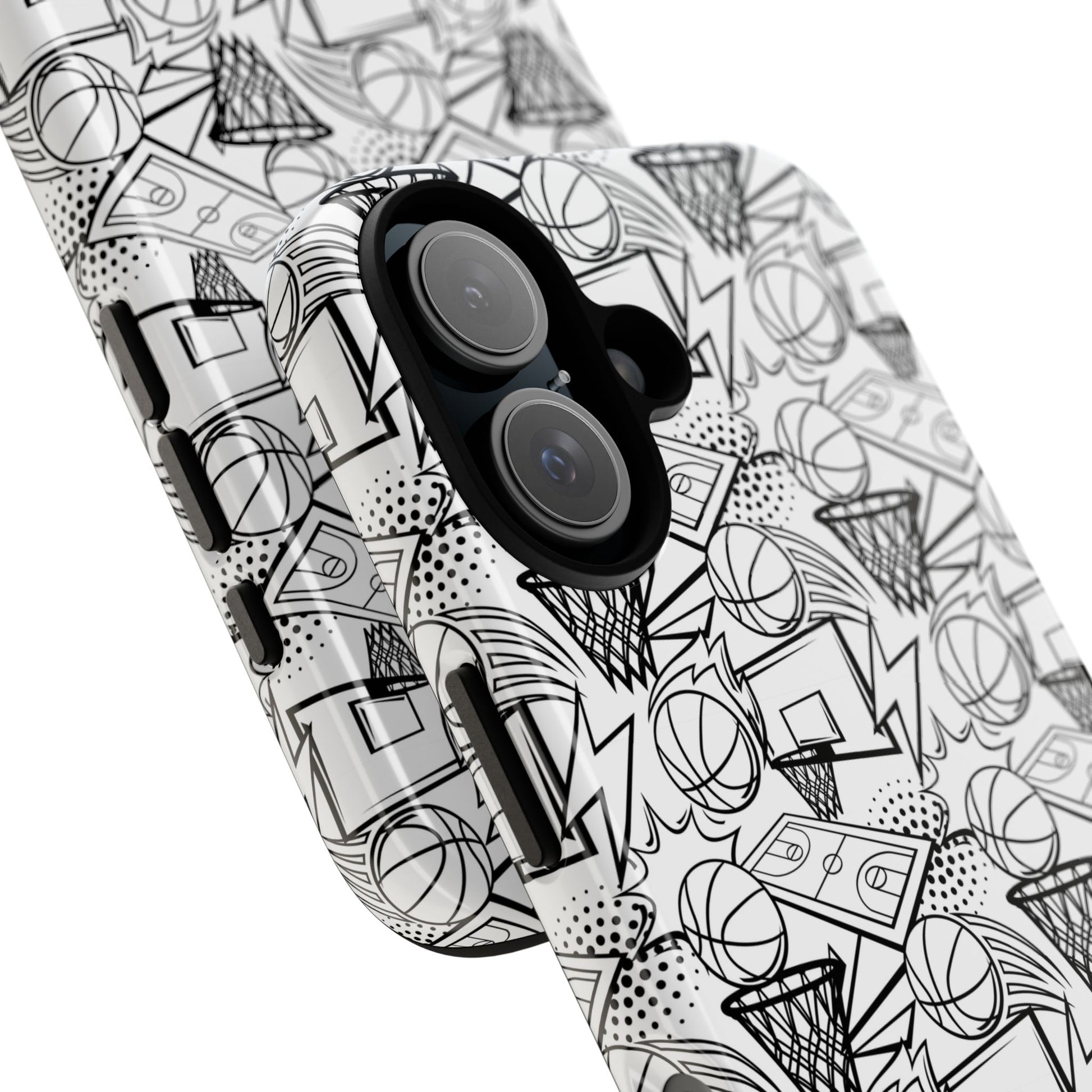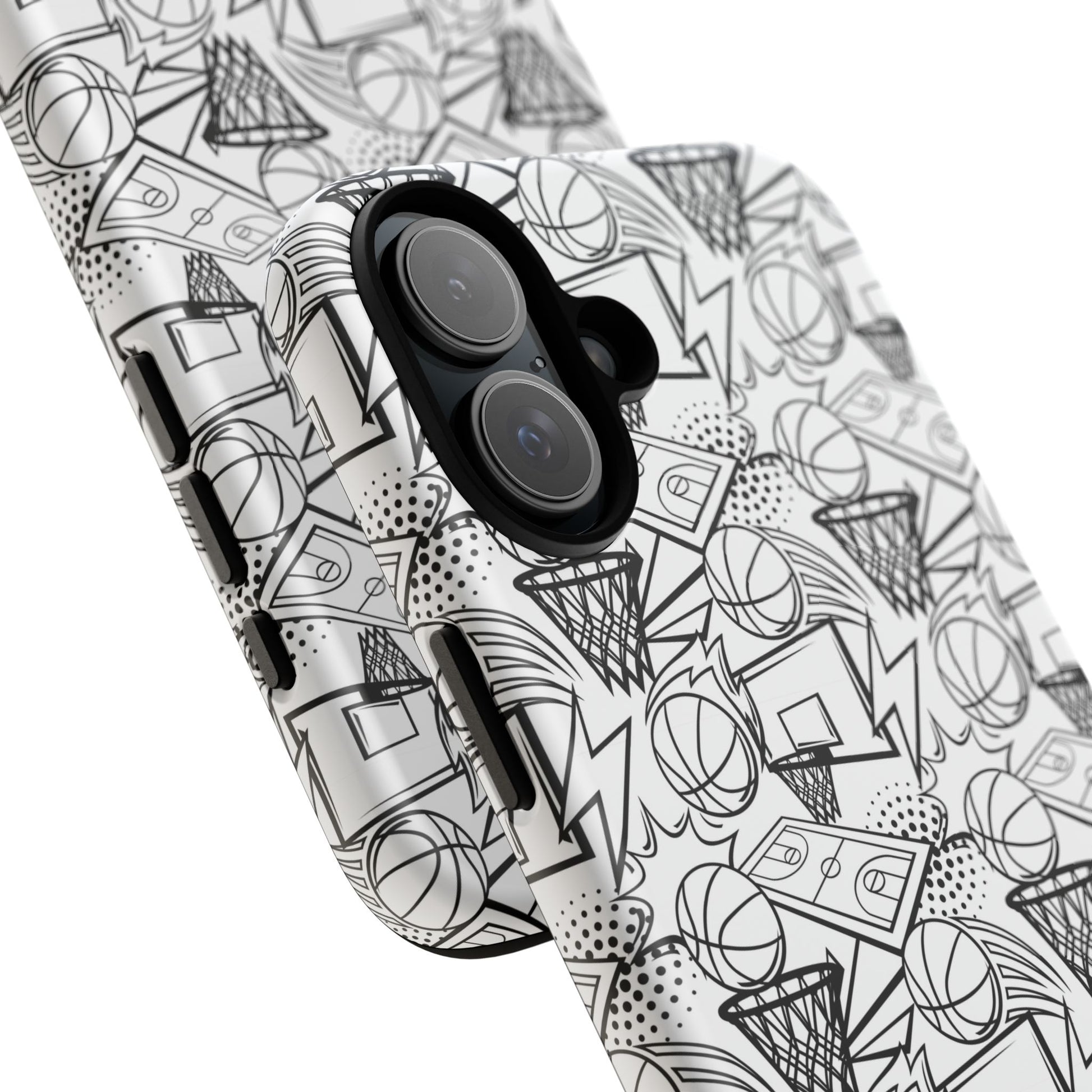 This slim, protective phone case brings a playful, hand-drawn basketball pattern to your daily carry. The monochrome collage of hoops, backboards and bouncing balls wraps fully around the shell in a high-definition 3D transfer, giving the case a lively, sketchbook feel without overwhelming your phone. Dual-layer construction—rigid polycarbonate shell with a soft TPU silicone liner—absorbs shocks from drops while keeping ports clear and wireless charging accessible. UV protection and certified material compliance mean the graphics hold up outdoors and the case meets strict safety standards. For adults who live and breathe the court, this case feels like a small, constant reminder of game day energy every time you pick up your phone.
