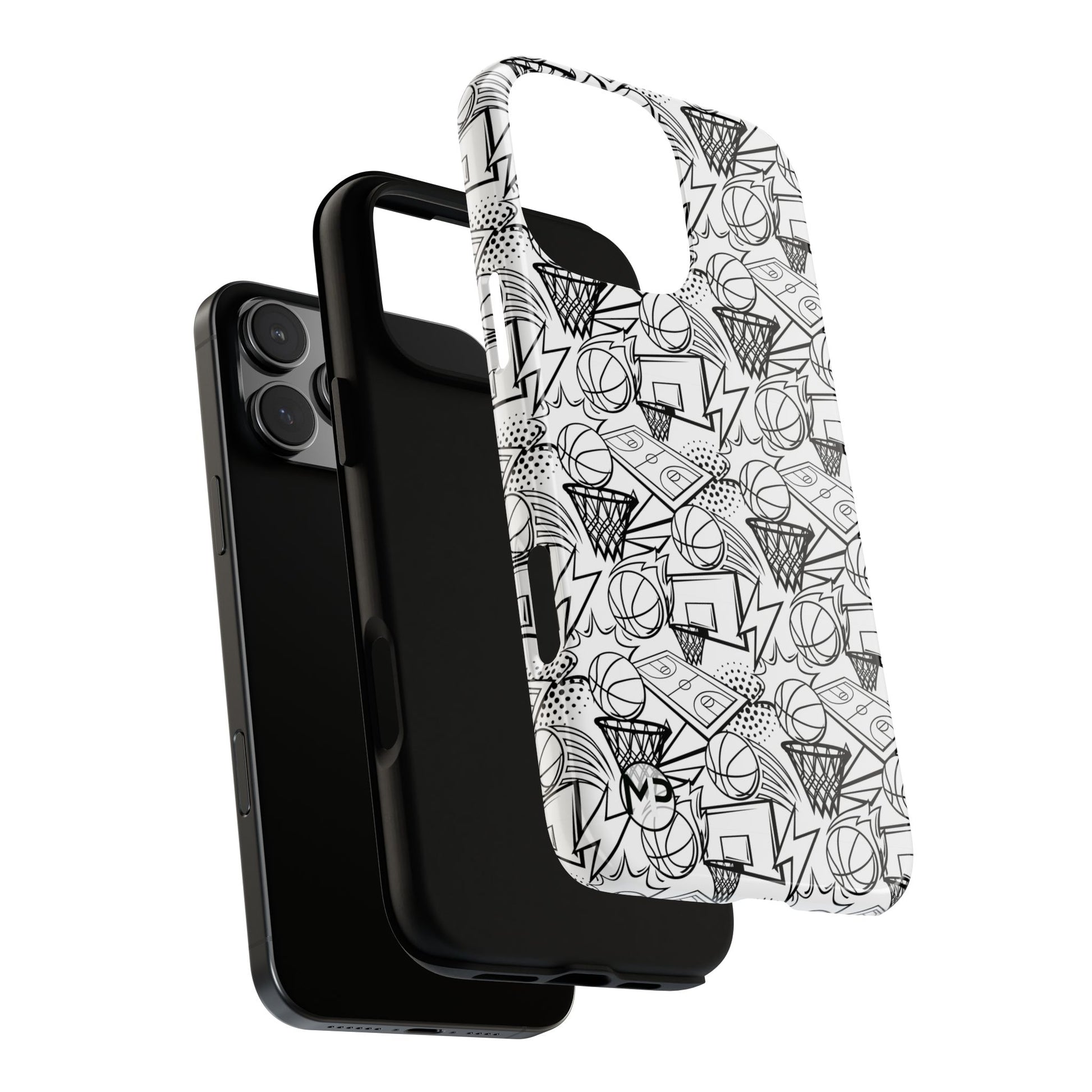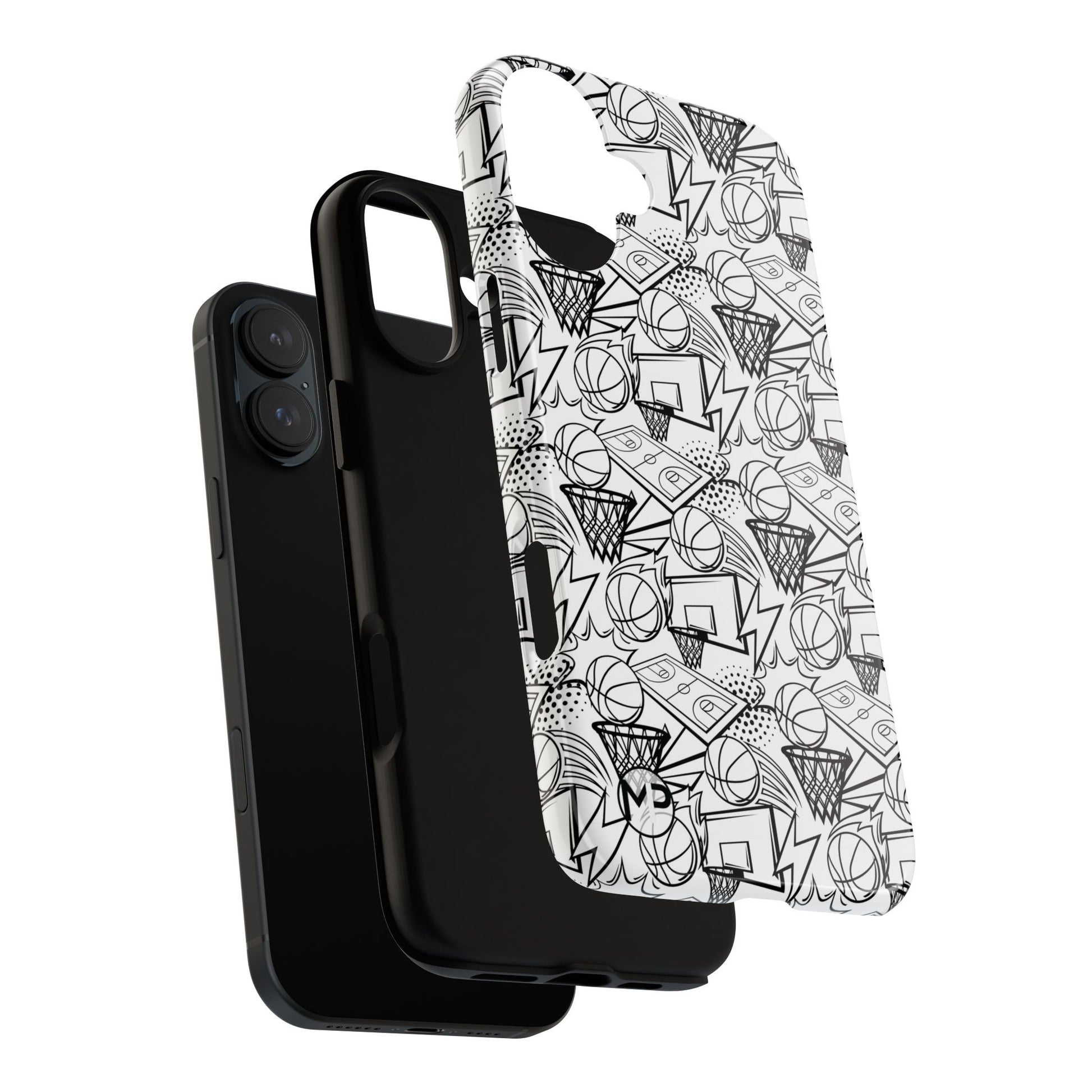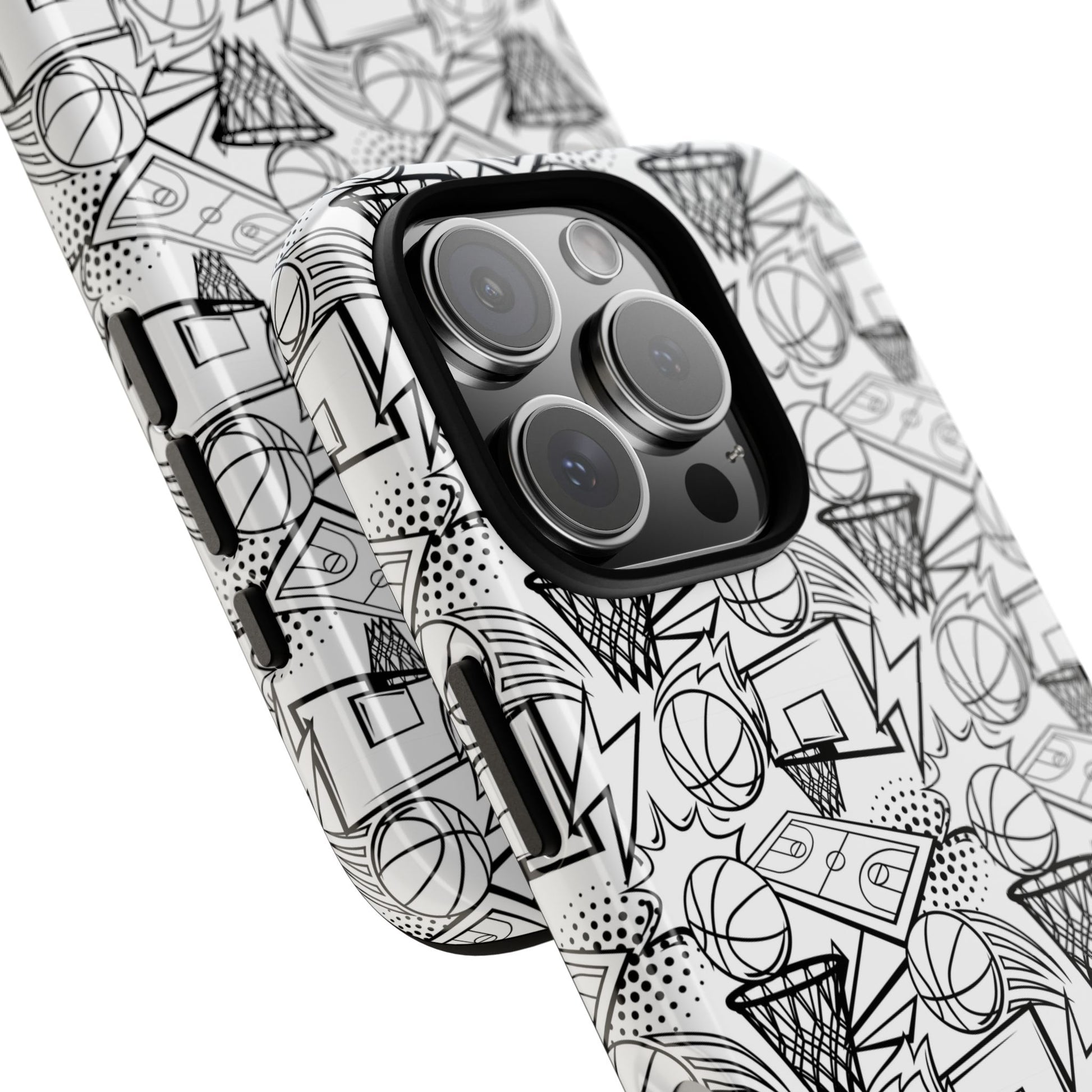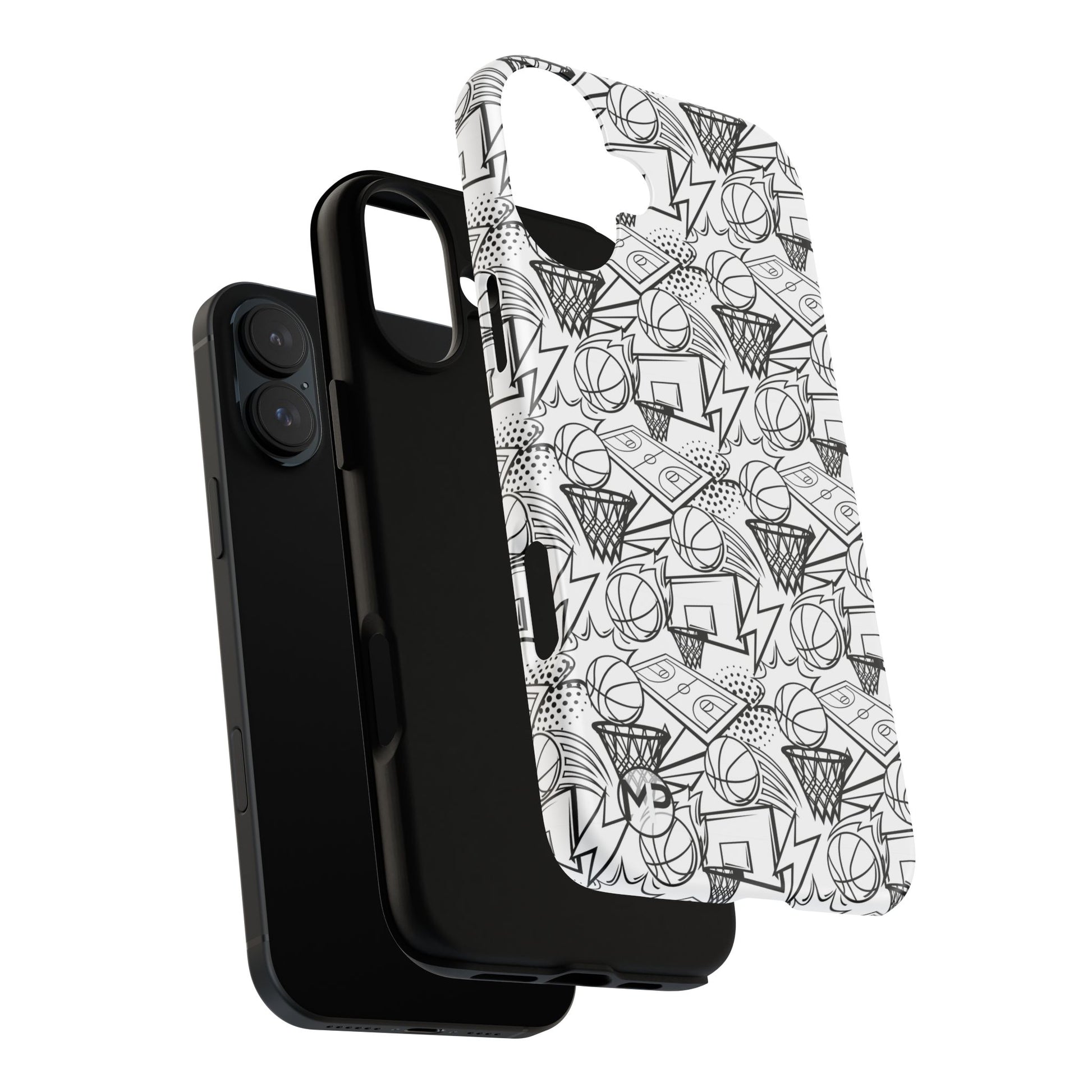 This slim, protective phone case brings a playful, hand-drawn basketball pattern to your daily carry. The monochrome collage of hoops, backboards and bouncing balls wraps fully around the shell in a high-definition 3D transfer, giving the case a lively, sketchbook feel without overwhelming your phone. Dual-layer construction—rigid polycarbonate shell with a soft TPU silicone liner—absorbs shocks from drops while keeping ports clear and wireless charging accessible. UV protection and certified material compliance mean the graphics hold up outdoors and the case meets strict safety standards. For adults who live and breathe the court, this case feels like a small, constant reminder of game day energy every time you pick up your phone.
