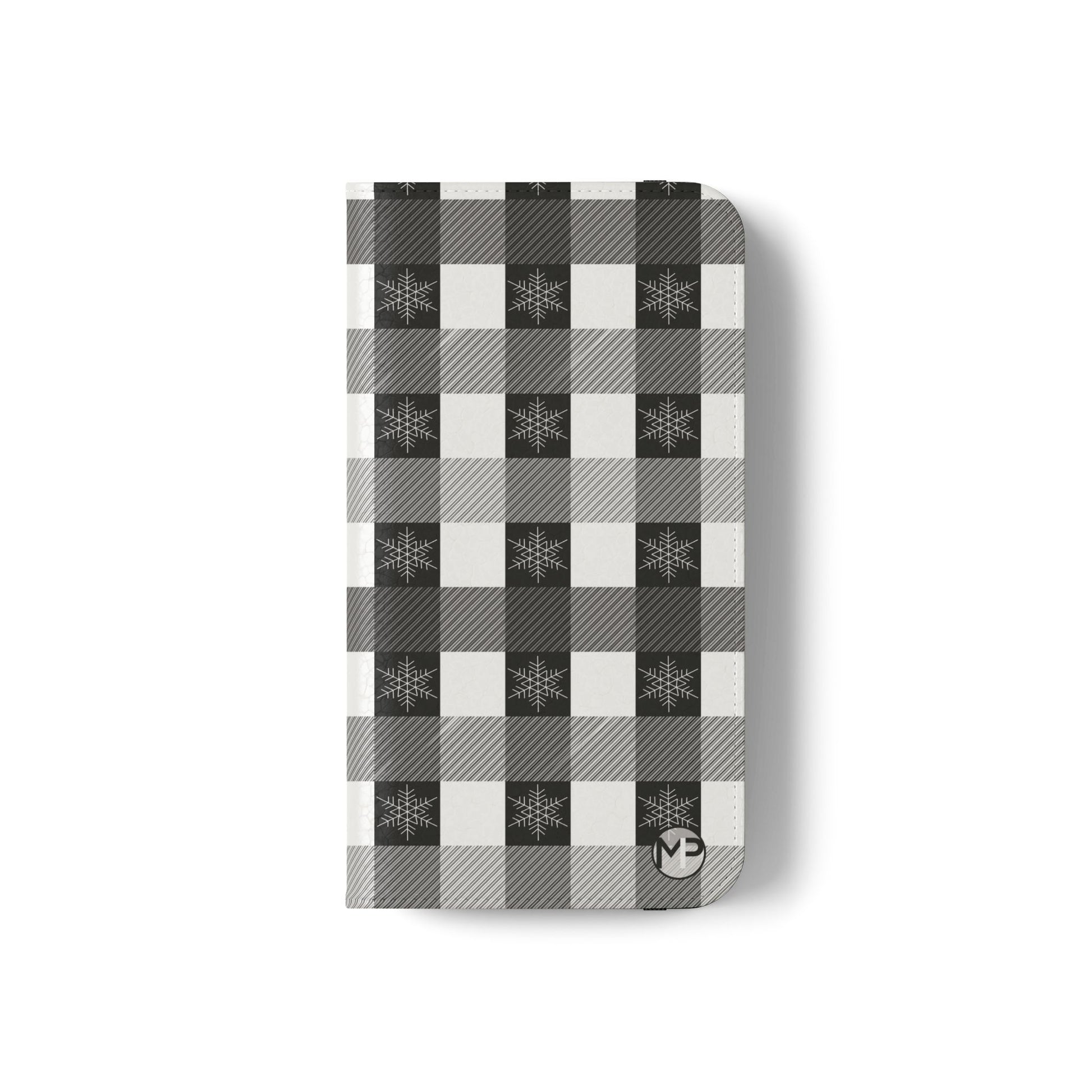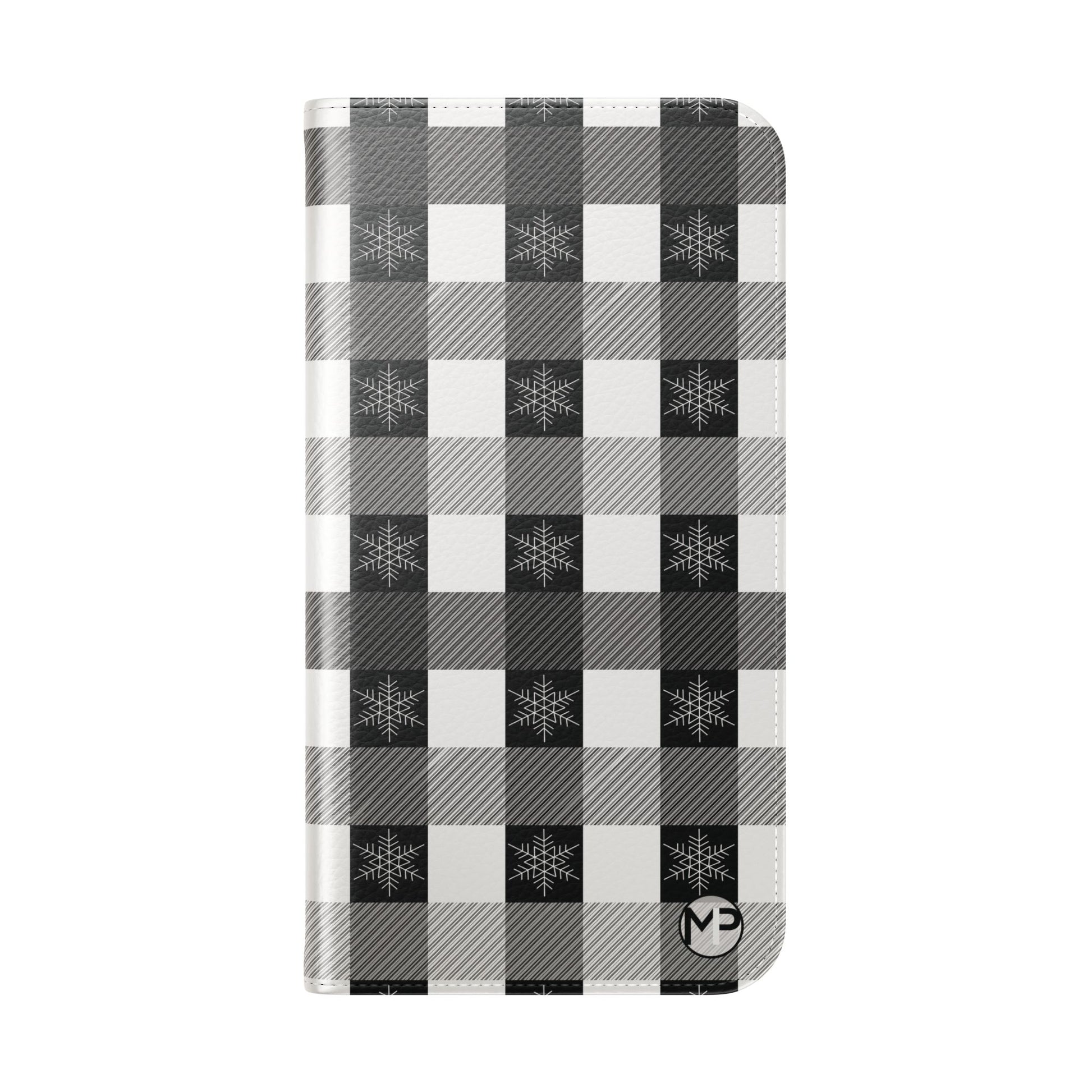 Black Buffalo Check Flip Phone Case — Plaid Wallet Flip Case with Card Slots