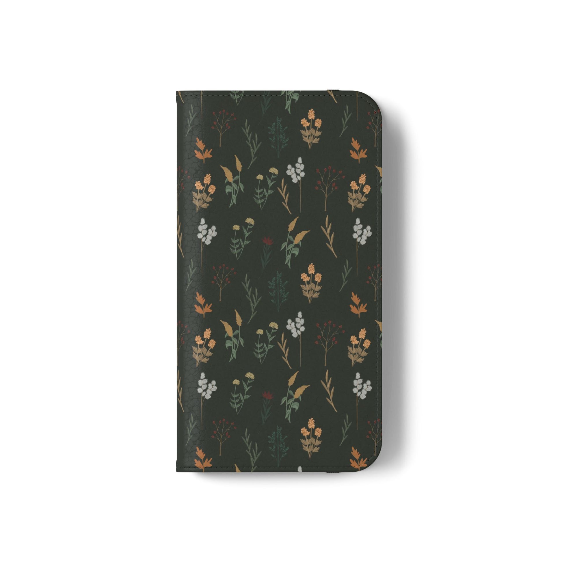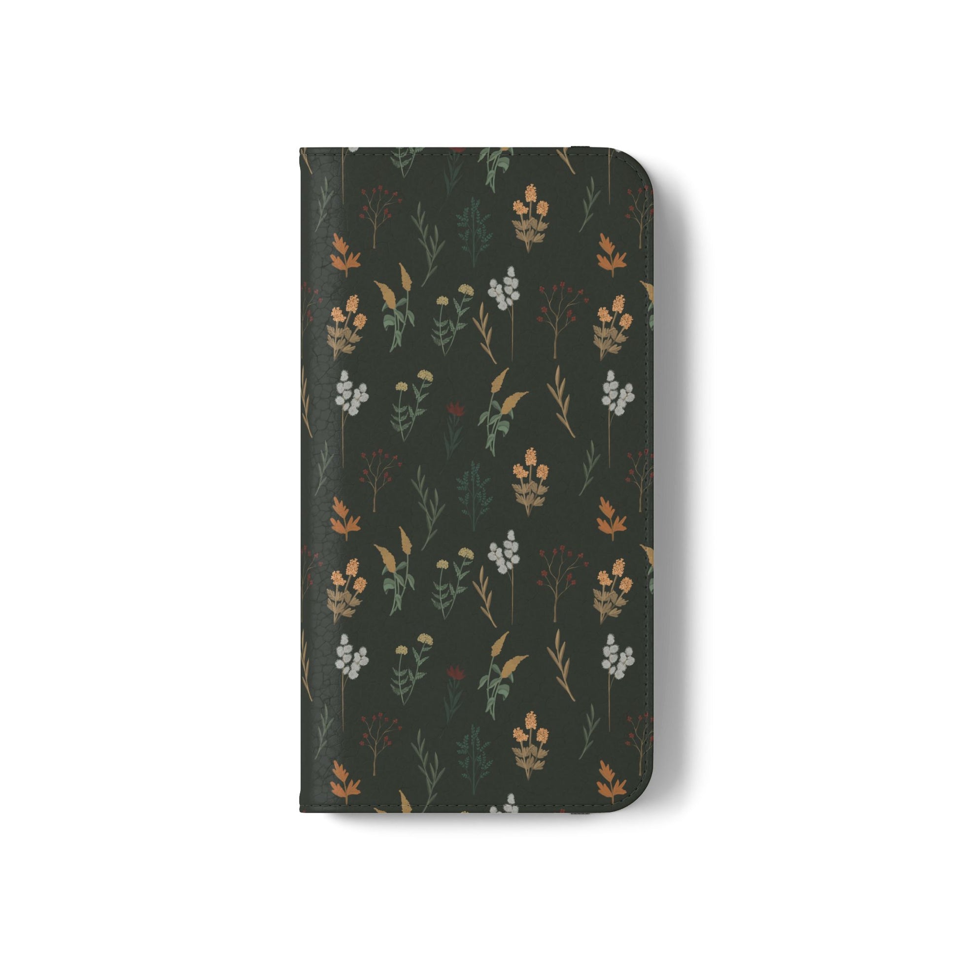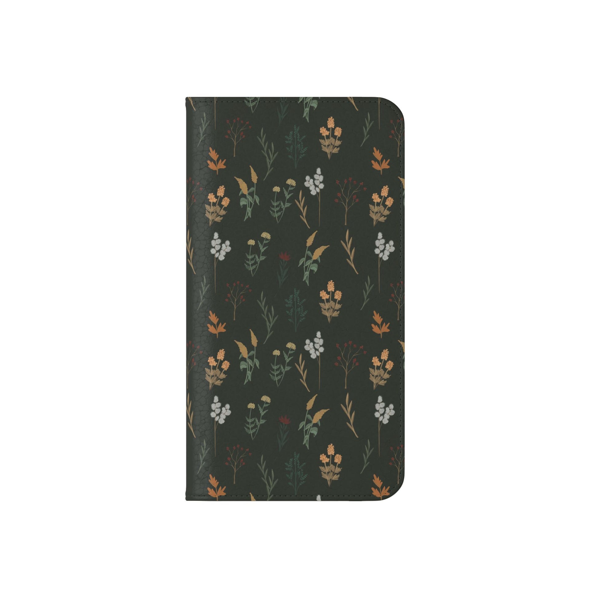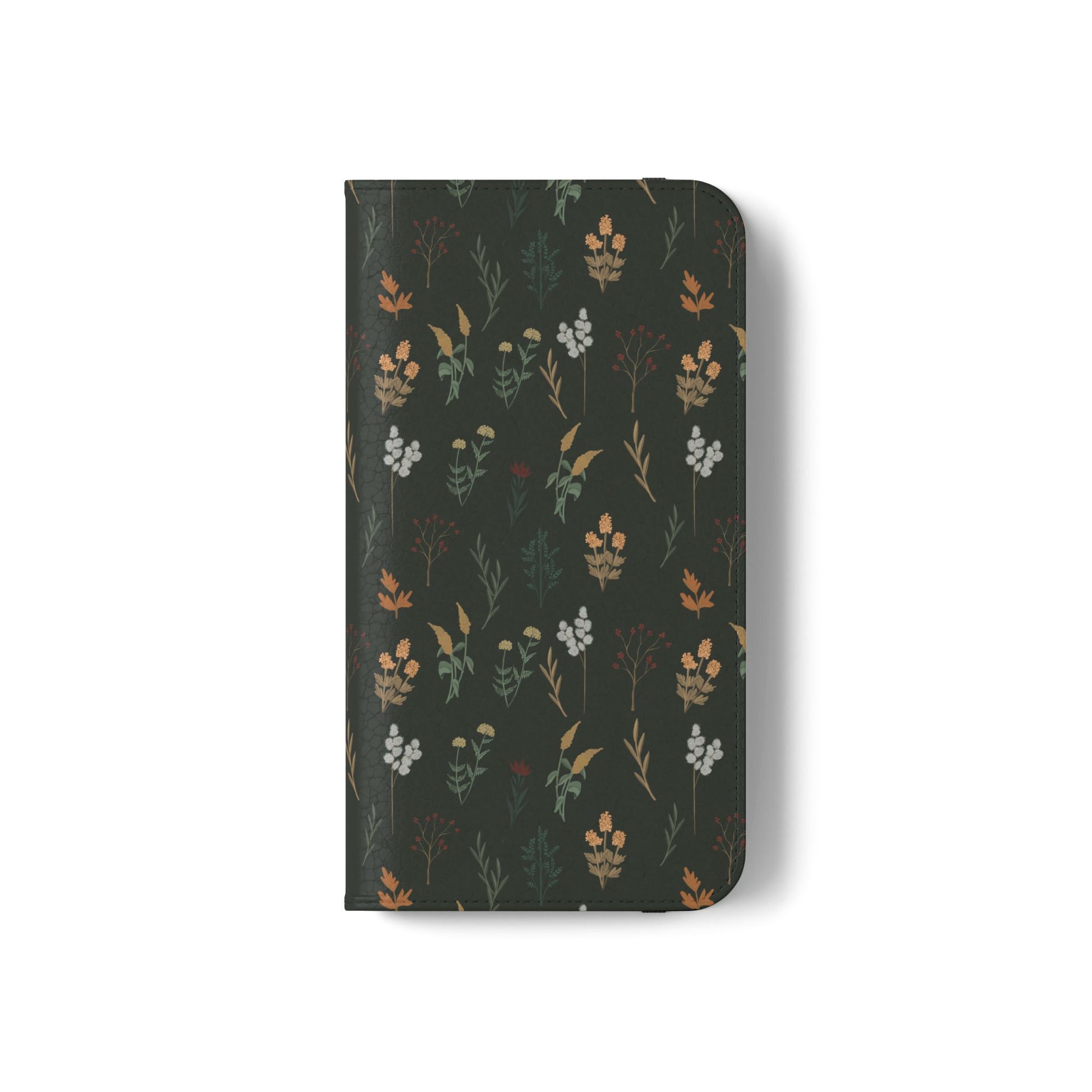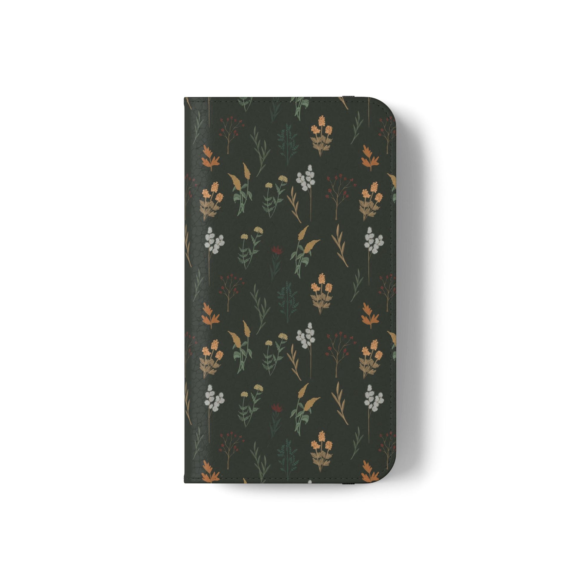 Botanical Floral Flip Phone Case — Dark Green Wallet Cover
