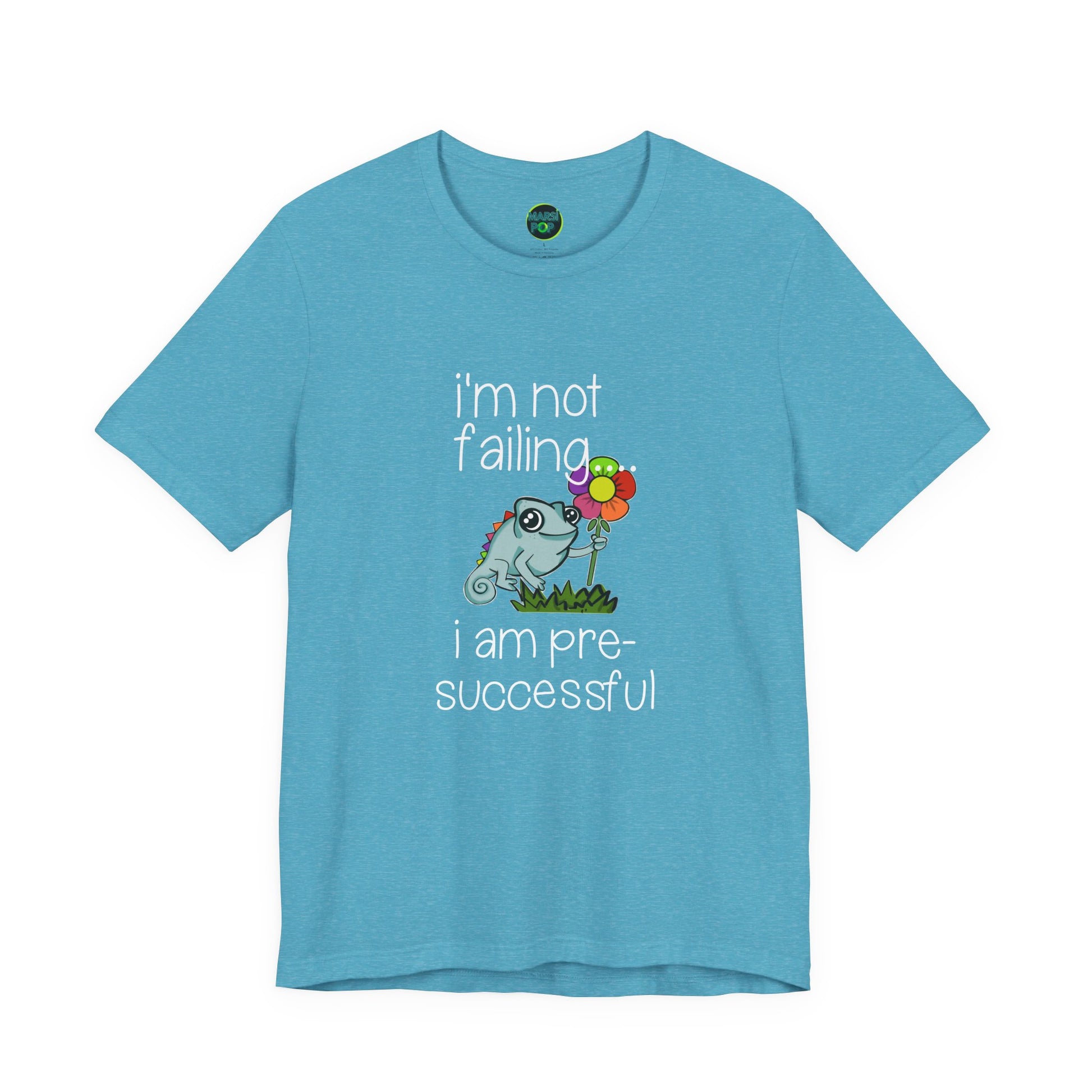 Forget the corporate ladder—this is for anyone currently navigating the scenic route to their goals. Featuring a wide-eyed, optimistic chameleon clutching a flower, this tee replaces high-pressure hustle with a moment of gentle, self-aware honesty. It’s the ultimate tribute to the "pre-successful" lifestyle—because you’re not failing, you’re just in the middle of a very colorful montage.