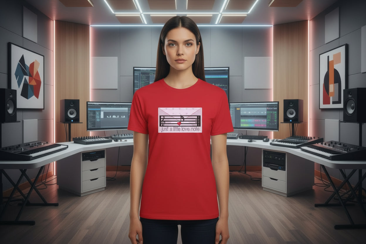 Wear your love of music like a quiet conversation. This soft, breathable tee carries a gentle pastel design on the front—a small musical staff with a single note and the phrase “just a little love note”—and a watercolor-style heart formed from a treble clef on the back. It feels like a note slid under a door: intimate, sincere, and a little playful. The lightweight cotton drapes easily for all-day comfort, so it moves with rehearsals, coffee runs between lessons, or slow Sunday mornings listening to vinyl. It’s for people who hum under their breath, keep a metronome on their nightstand, and show care through small, thoughtful gestures. Bring this shirt to low-key concerts, teaching days, housewarmings, or whenever you want to wear something that says you love music without shouting it.