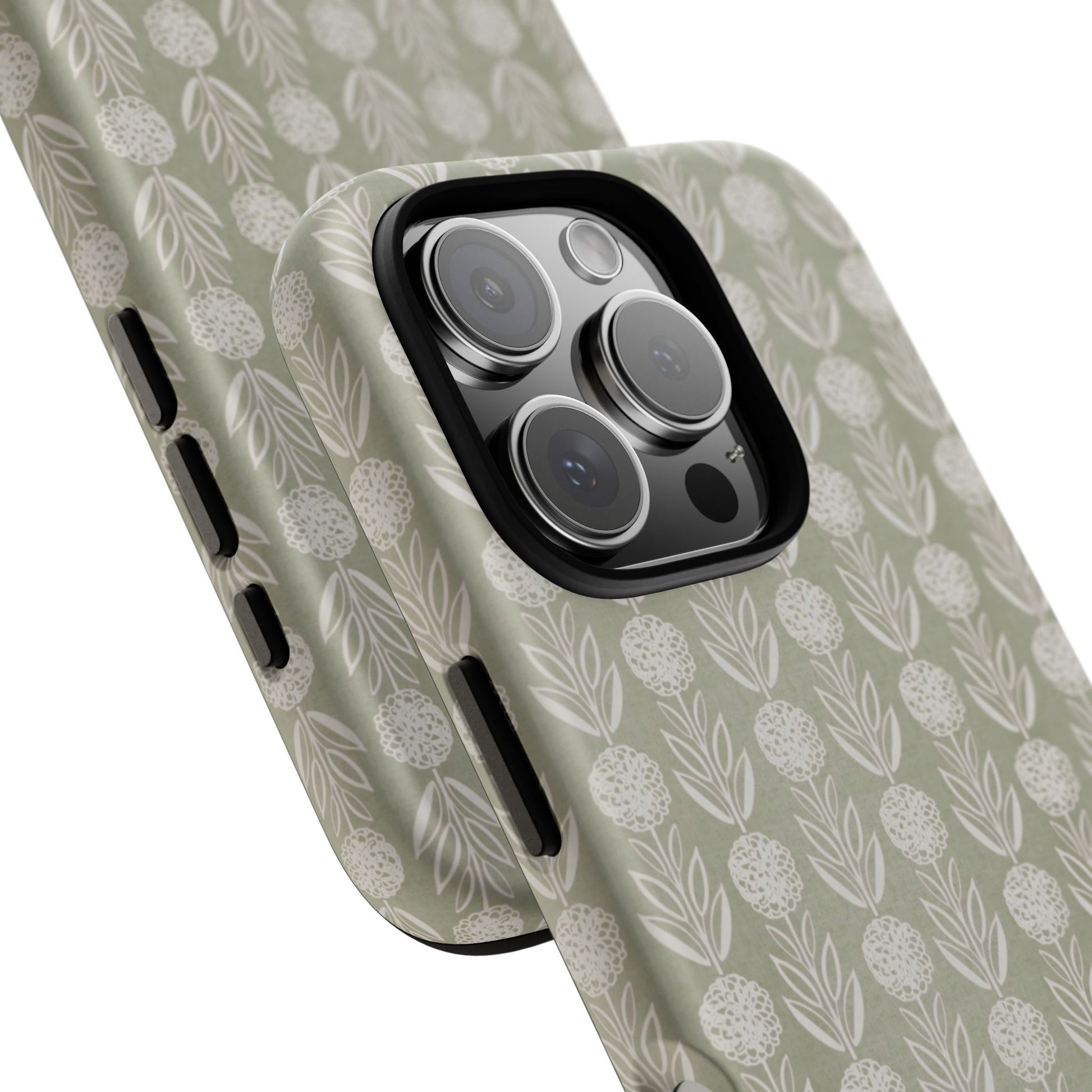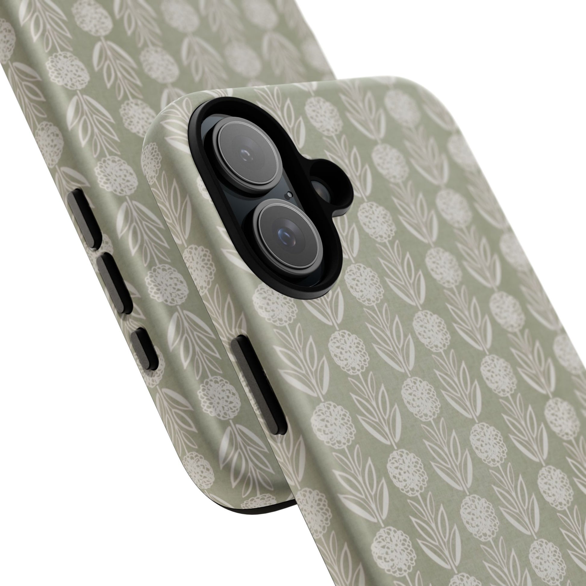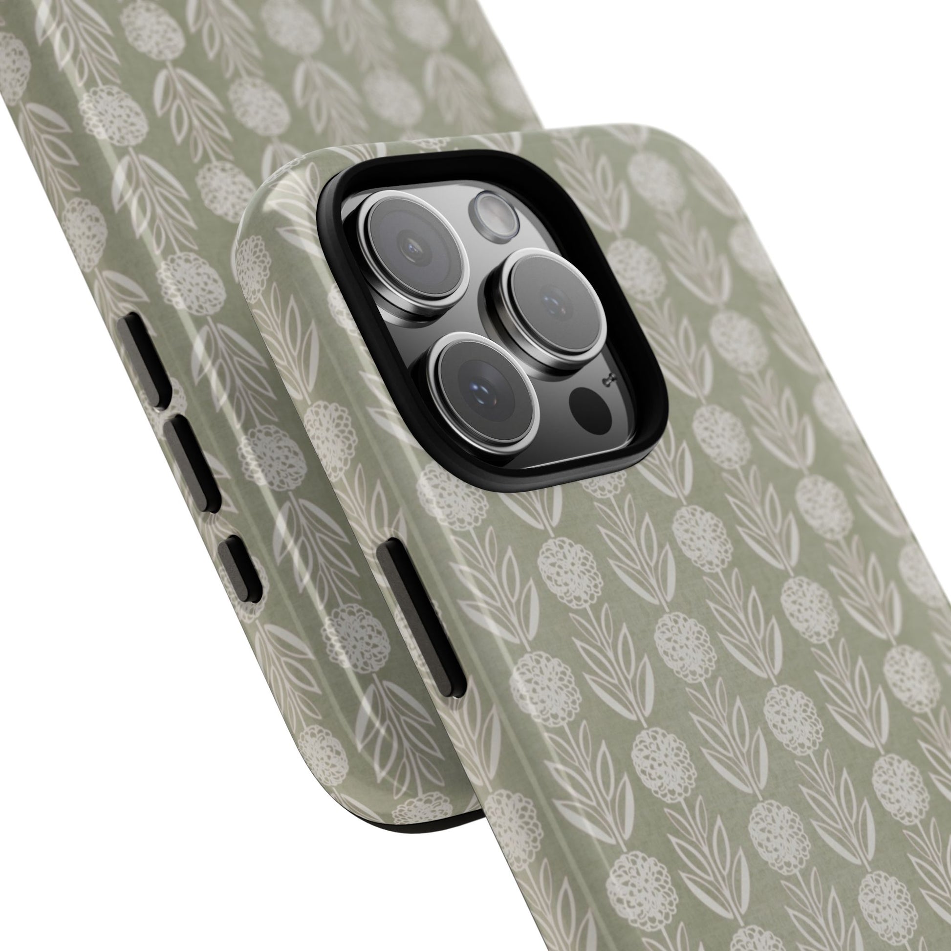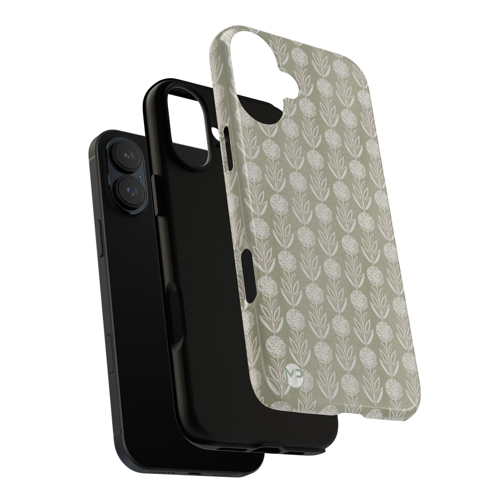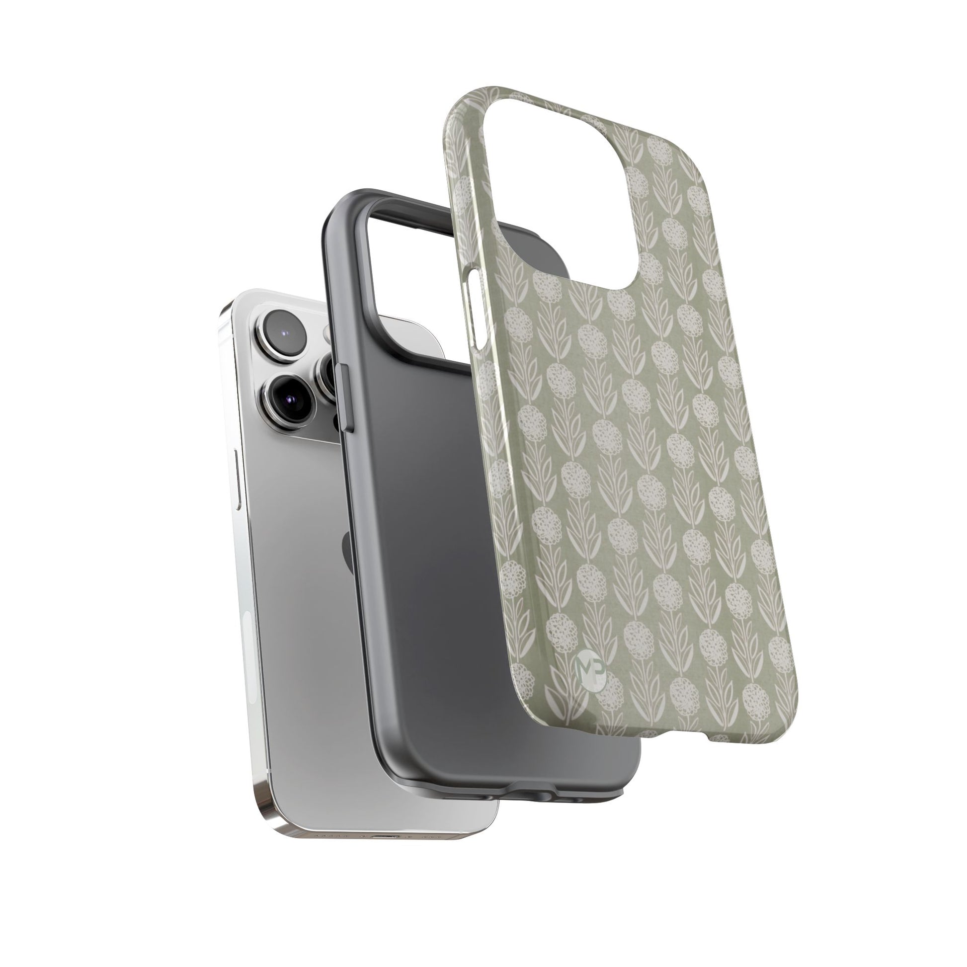 Sage Floral Stripe Tough Phone Case – Neutral Botanical Protective Cover