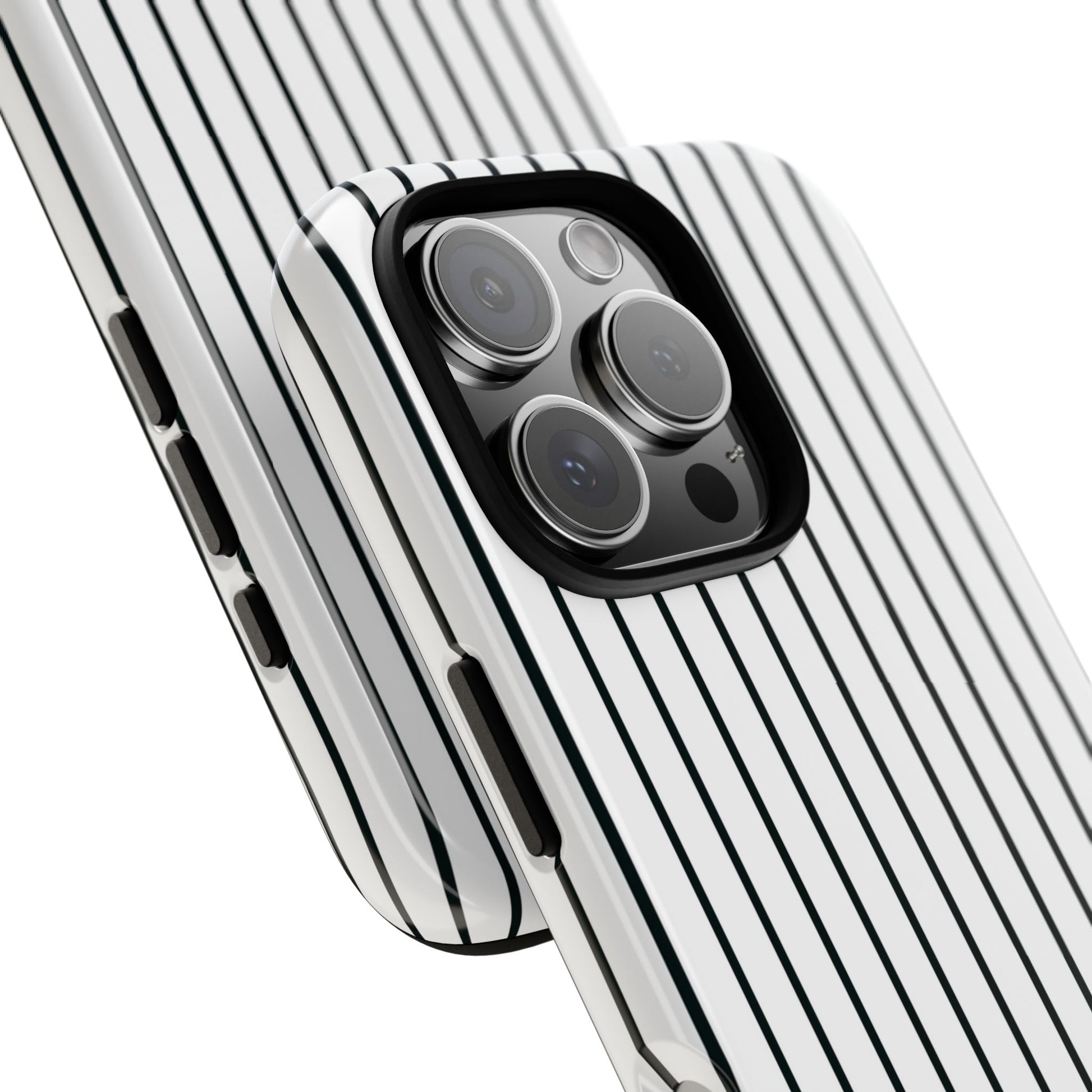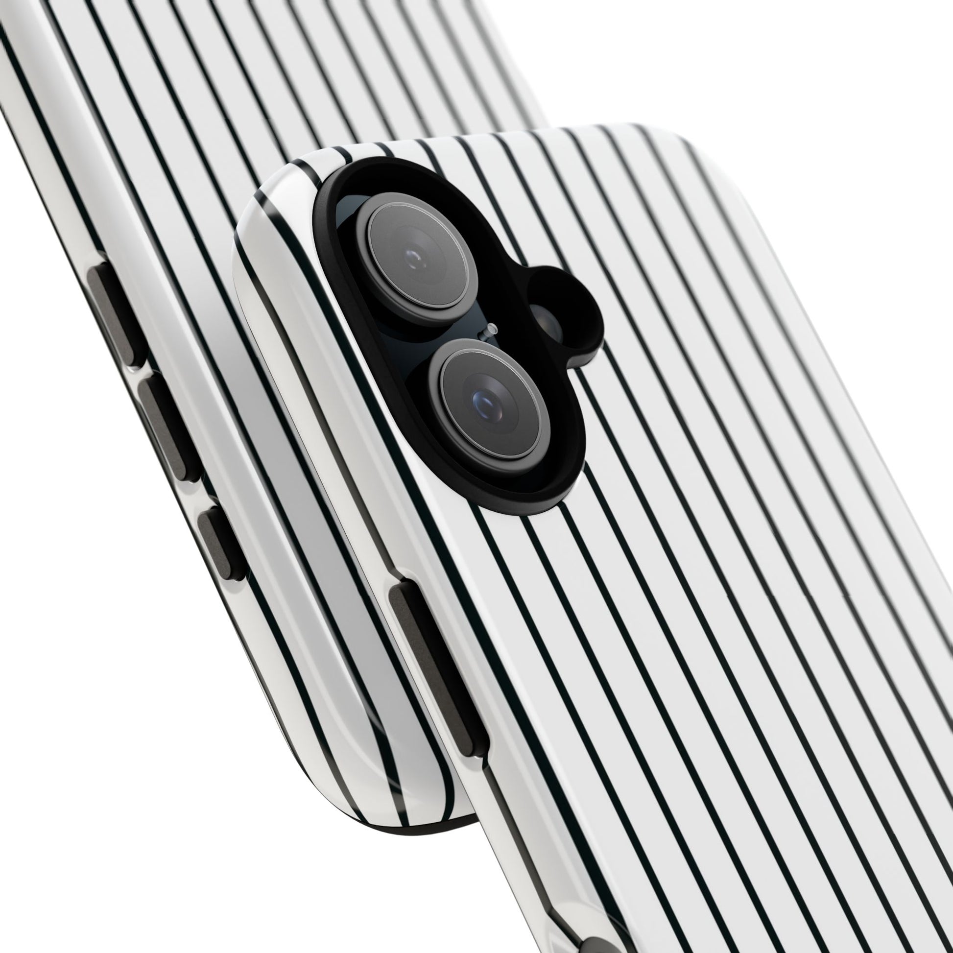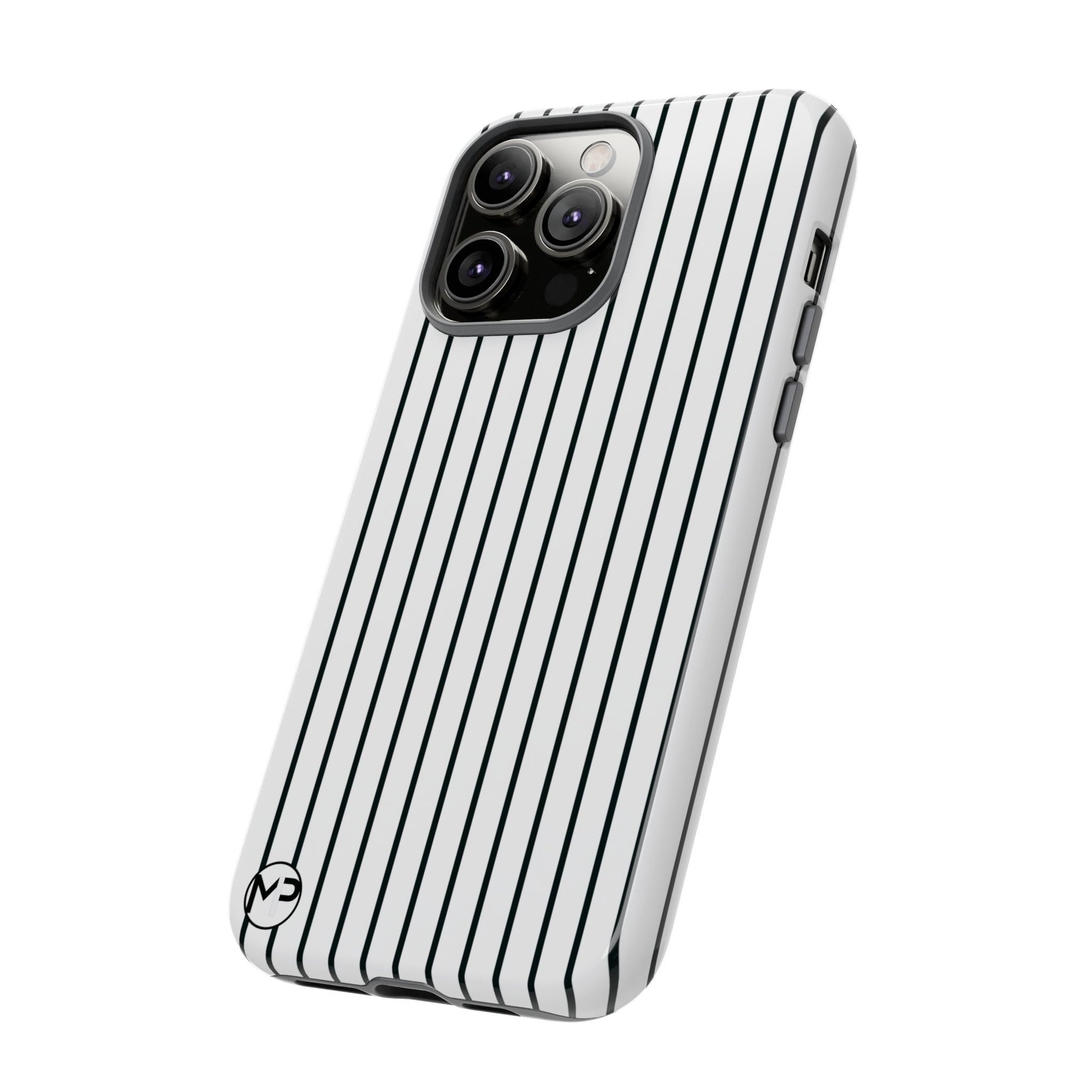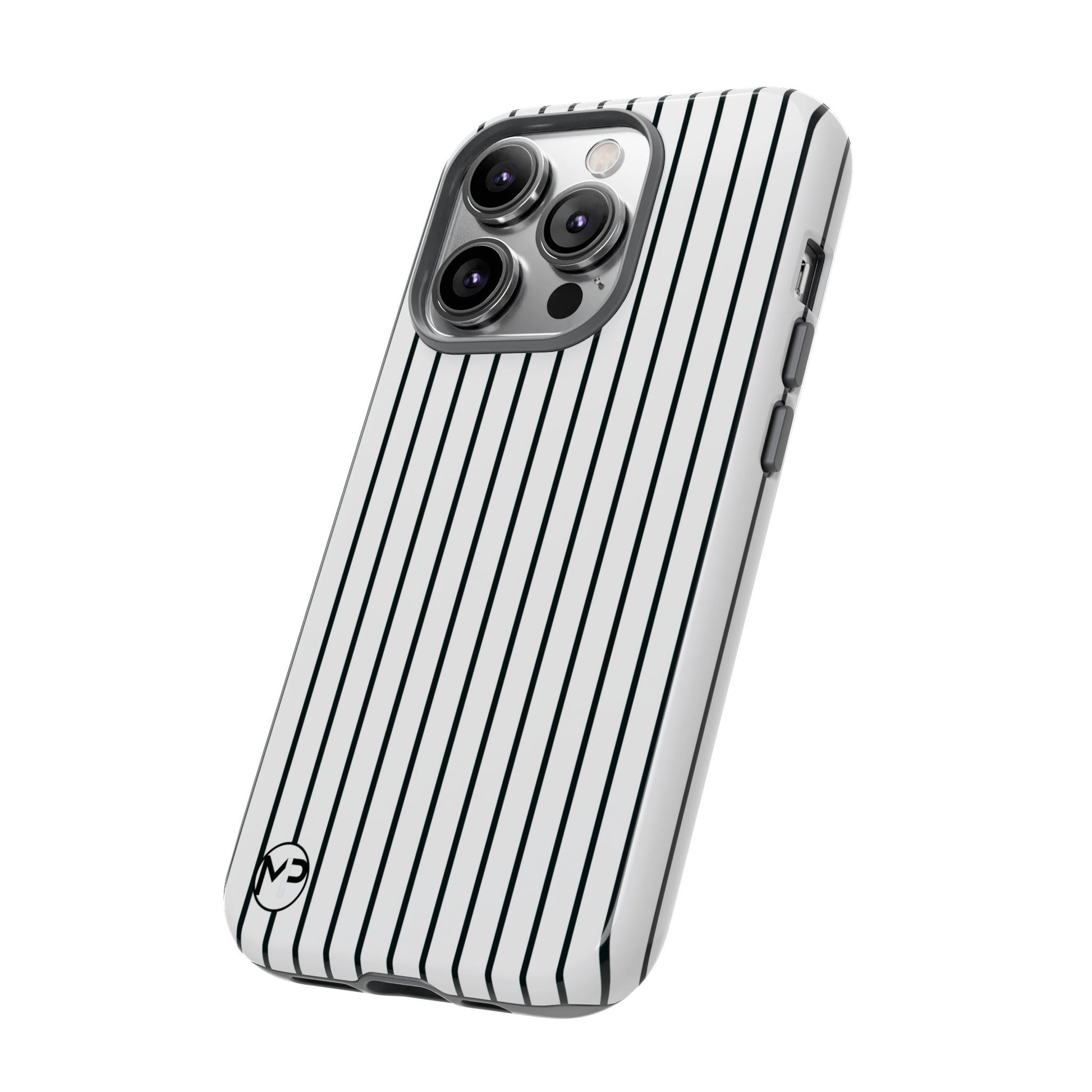 Slim, glossy phone case with vertical pinstripes that reads both professional and quietly bold. The high-density 3D wrap keeps the pattern sharp across curved edges while a TPU silicone liner cushions shocks. It slips easily into pockets, resists outdoor fading thanks to UV protection, and keeps camera and ports fully accessible. Subtle branding at the corner stays discreet so the striped motif remains the focus. This case suits someone who favors clean, modern style and wants reliable drop protection without adding bulk.