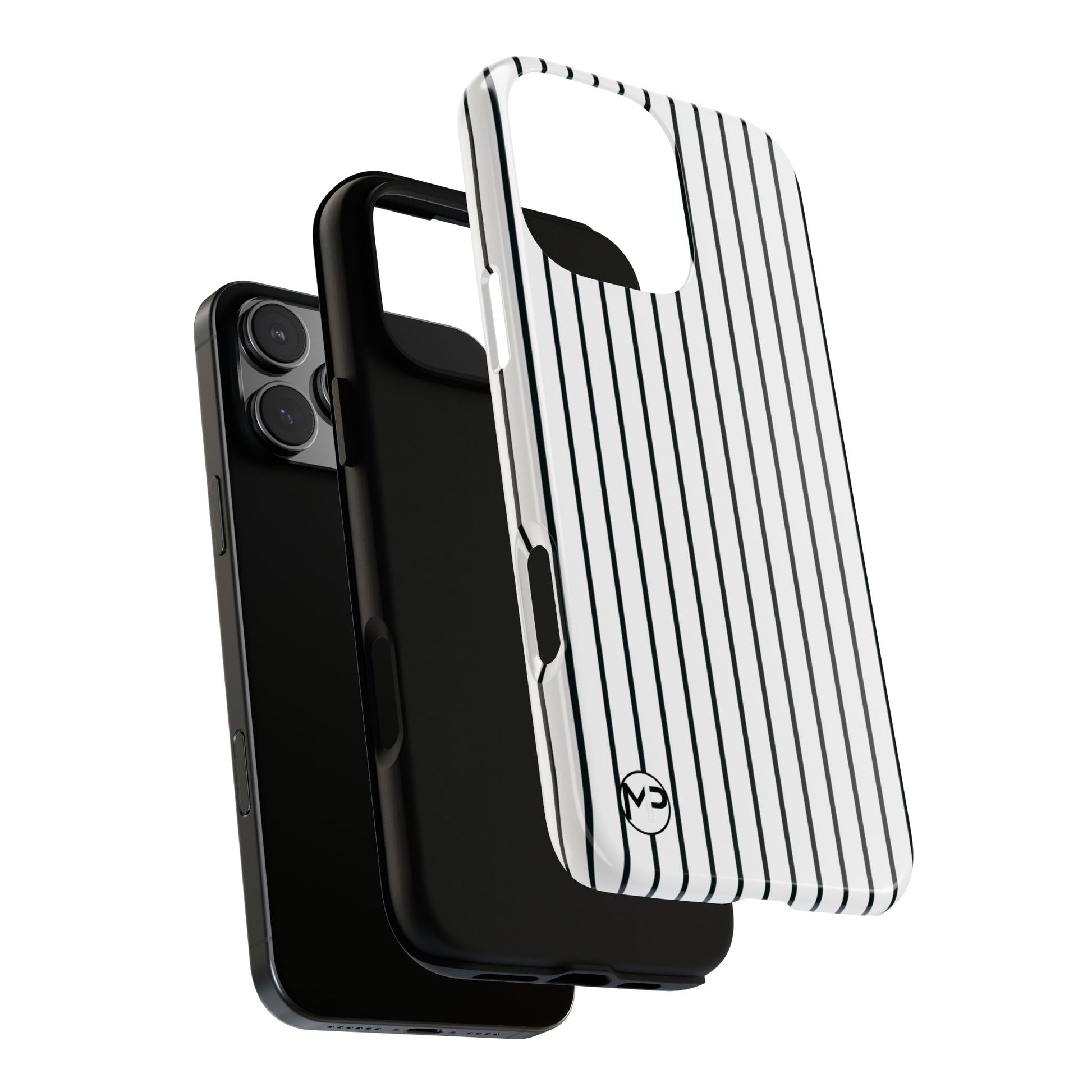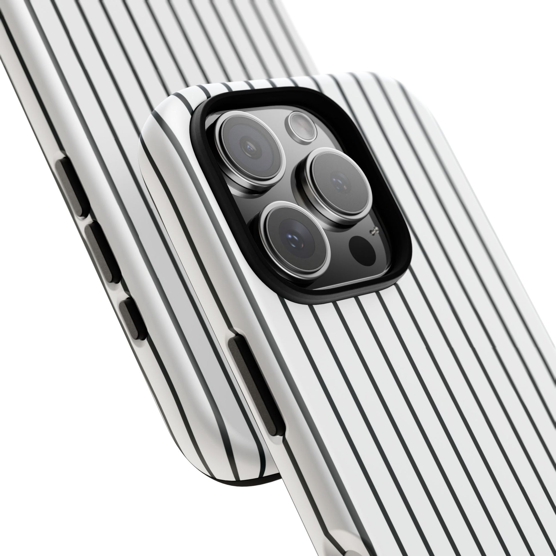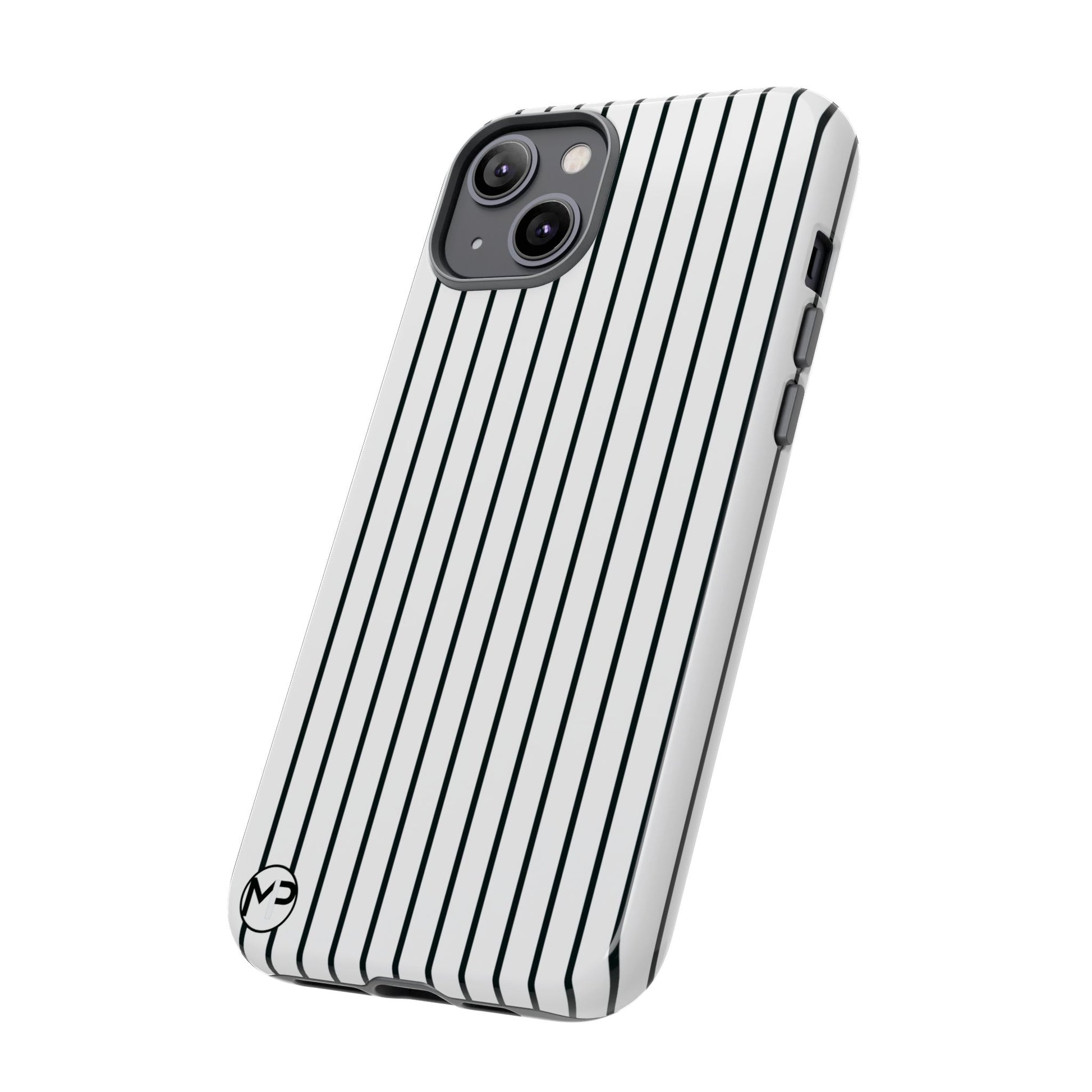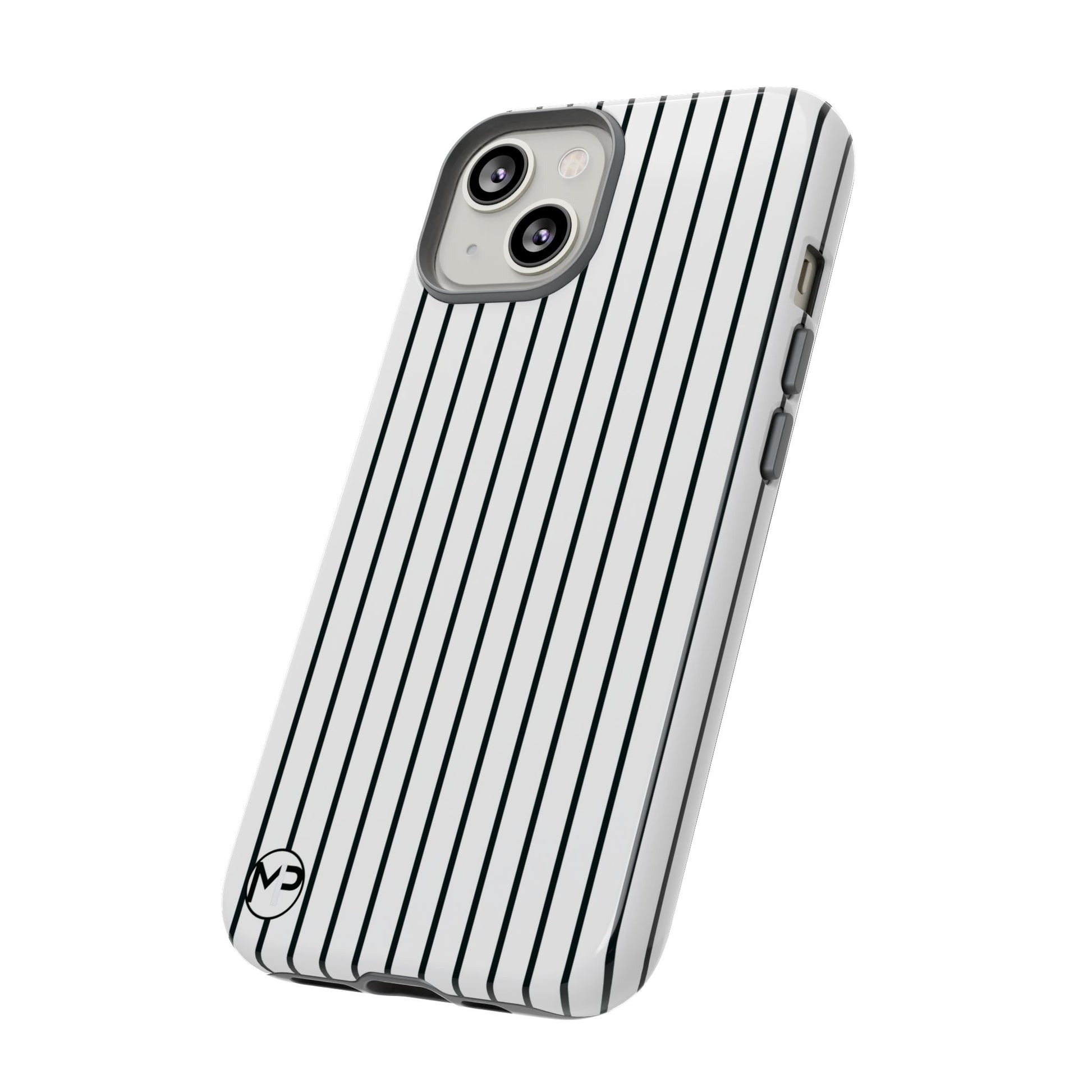 Slim, glossy phone case with vertical pinstripes that reads both professional and quietly bold. The high-density 3D wrap keeps the pattern sharp across curved edges while a TPU silicone liner cushions shocks. It slips easily into pockets, resists outdoor fading thanks to UV protection, and keeps camera and ports fully accessible. Subtle branding at the corner stays discreet so the striped motif remains the focus. This case suits someone who favors clean, modern style and wants reliable drop protection without adding bulk.